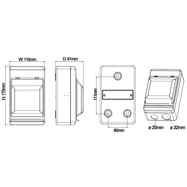 • 25/32mm Circular cable entry knock-outs on the top and bottom