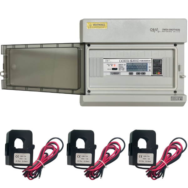 OB737CT MID meter, pre-wired with fuses in a 12 way IP66 polycarbonate enclosure, complete with G6 modem, SIM and a set of 3 split core current transformers to suit. Includes user account set up on the obmeters platform for accessing the metering data.